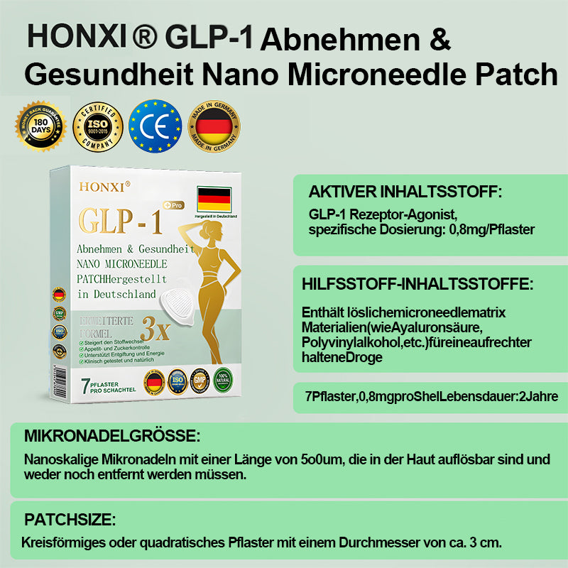 Das Honxiยฎ Tirzepatid Nano-Mikronadelpflaster wurde von einem Team fรผhrender Experten fรผr Adipositas-Management sorgfรคltig entwickelt. Sie haben jahrelange, intensive Forschung betrieben, um die Mechanismen von Gewichtsverlust und Adipositas-Kontrolle vollstรคndig zu verstehen. Seine einzigartige Formel fรถrdert effektiv die Gewichtsabnahme, stabilisiert den Blutzuckerspiegel und verbessert das Stoffwechselgleichgewicht. Matrixyl 3000 sorgt fรผr einen deutlich straffenden und festigenden Effekt. So kรถnnen Anwender ihre Figur und ihren Hautzustand umfassend verbessern und ihre Gesundheitsziele erreichen.